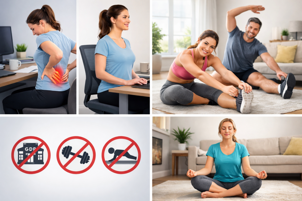 A science-based daily routine designed for people who sit for long hours and suffer from lower back pain, stiffness, and poor posture